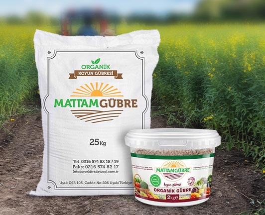 Mattam Organik Koyun Gübresi Türkiye'de "Ecas Organik Ürün Sertifikası" alan tek firmadır. Mattam Koyun gübresi her türlü sebze, meyve, tarla, sera, bahçe ve süs bitkileriniz için kısa ve uzun dönemli beslenme etkisi sağlar. Sadece doğal ve organik maddeler içerir. Toprağı gevşetir ve toprak ömrünü iyilestirir. Humus oluşumunu sağlar.